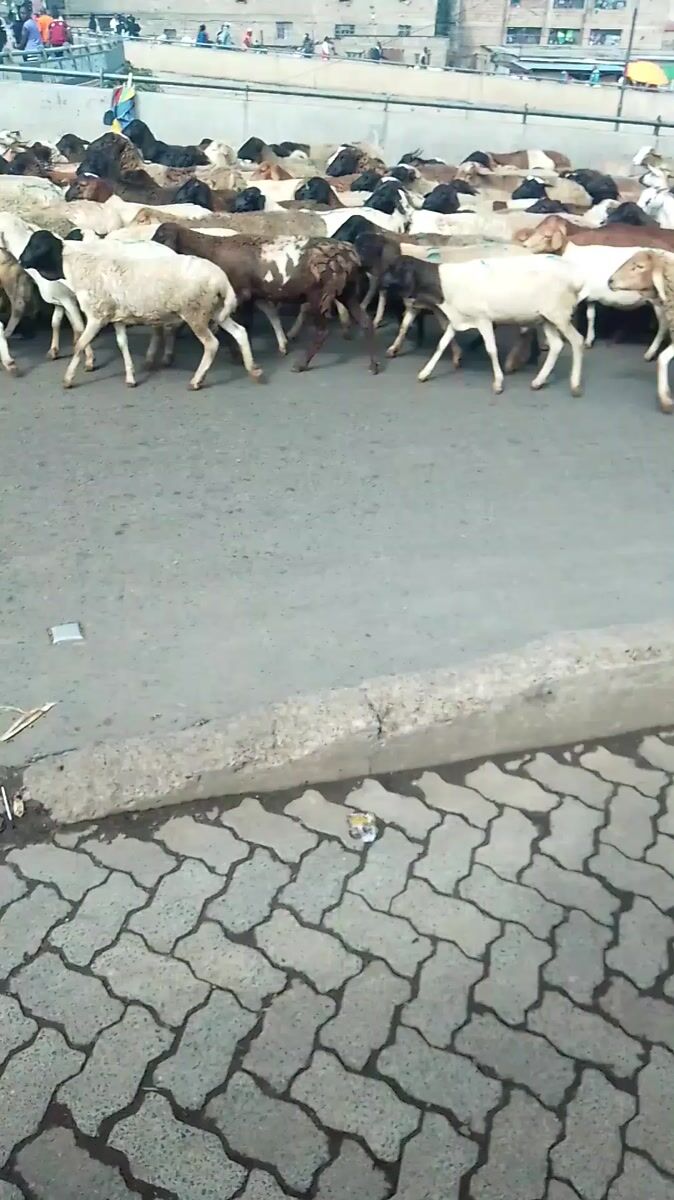 Topics: livestock herd, sheep goats, street crossing, traffic disruption, urban wildlife, nairobi streets, city life, transport, urban, daily life