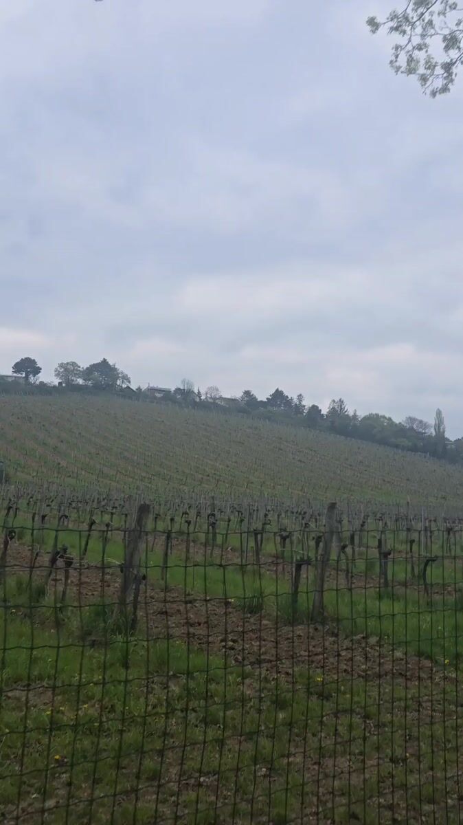 Vienna hillside vineyard filmed alongside tree-lined pedestrian path
