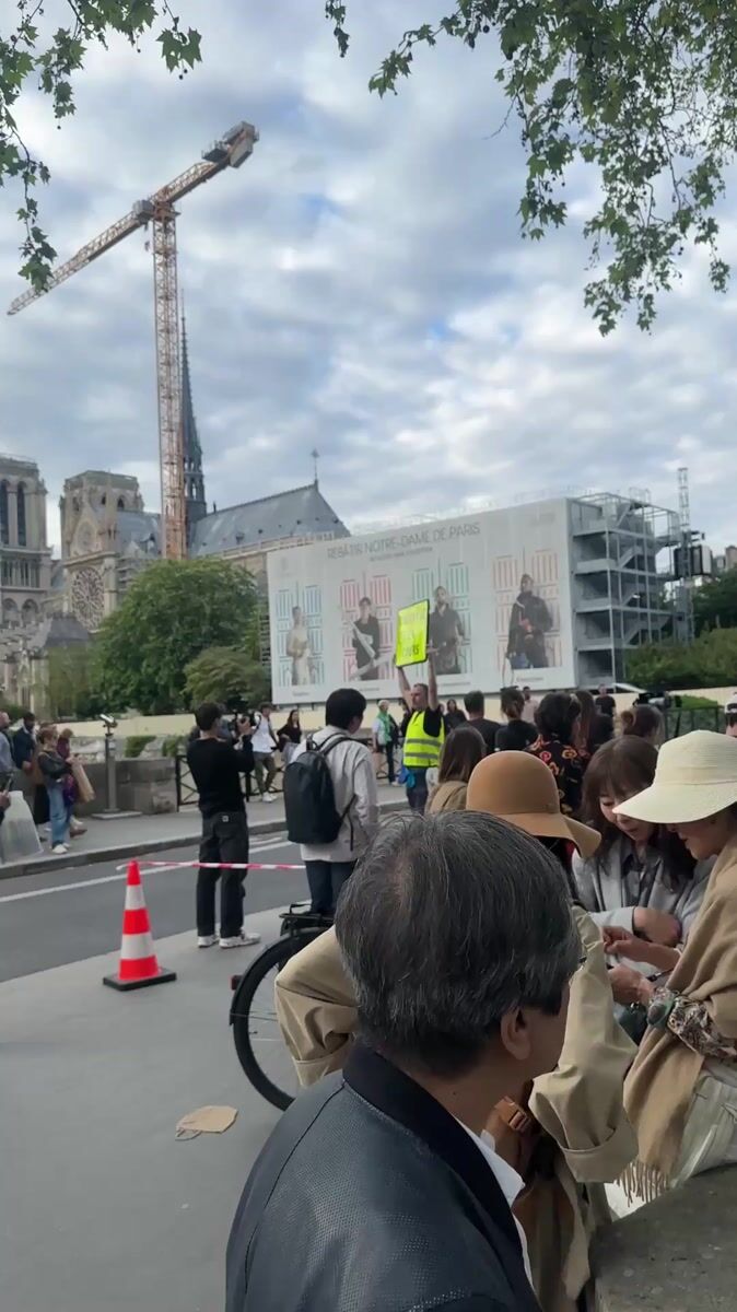 Crowd gathers at Notre Dame reconstruction site in Paris