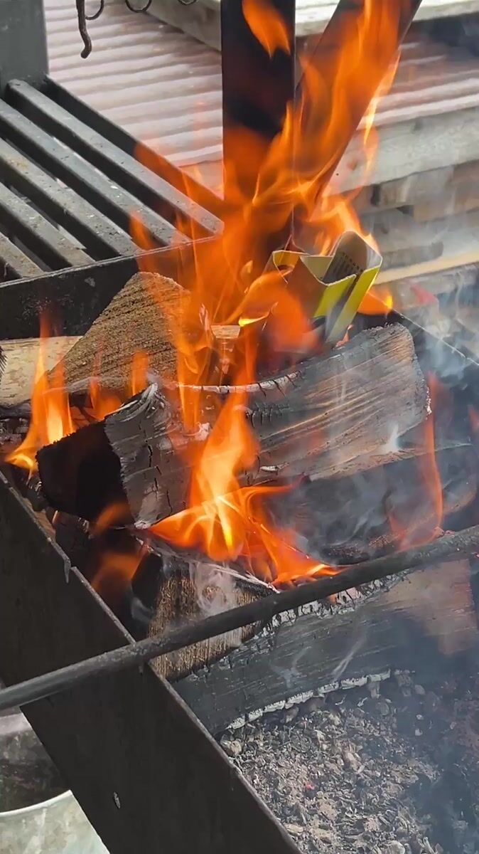 Topics: family gathering, outdoor fire, children playing, family, outdoor activity, rural life, social, domestic, community, daily life