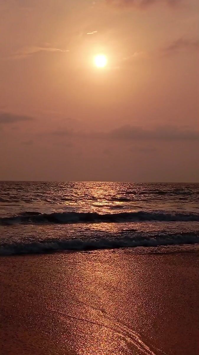 Topics: beach sunset, querim beach, coastal evening, sunset photography, beach scenery, coastal landscape, tourism, nature, travel, daily life