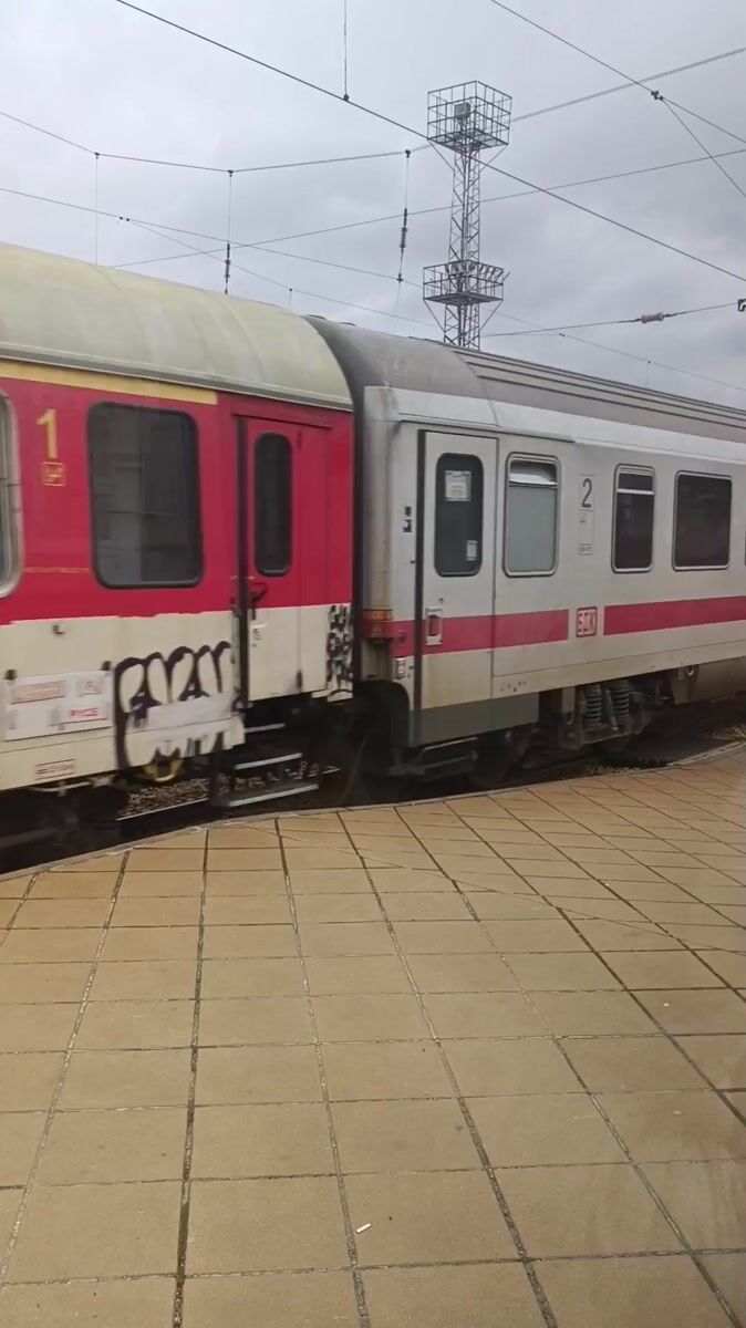Topics: train station, passenger boarding, graffiti train, railway transport, public transit, urban transport, travel, infrastructure, daily life, europe