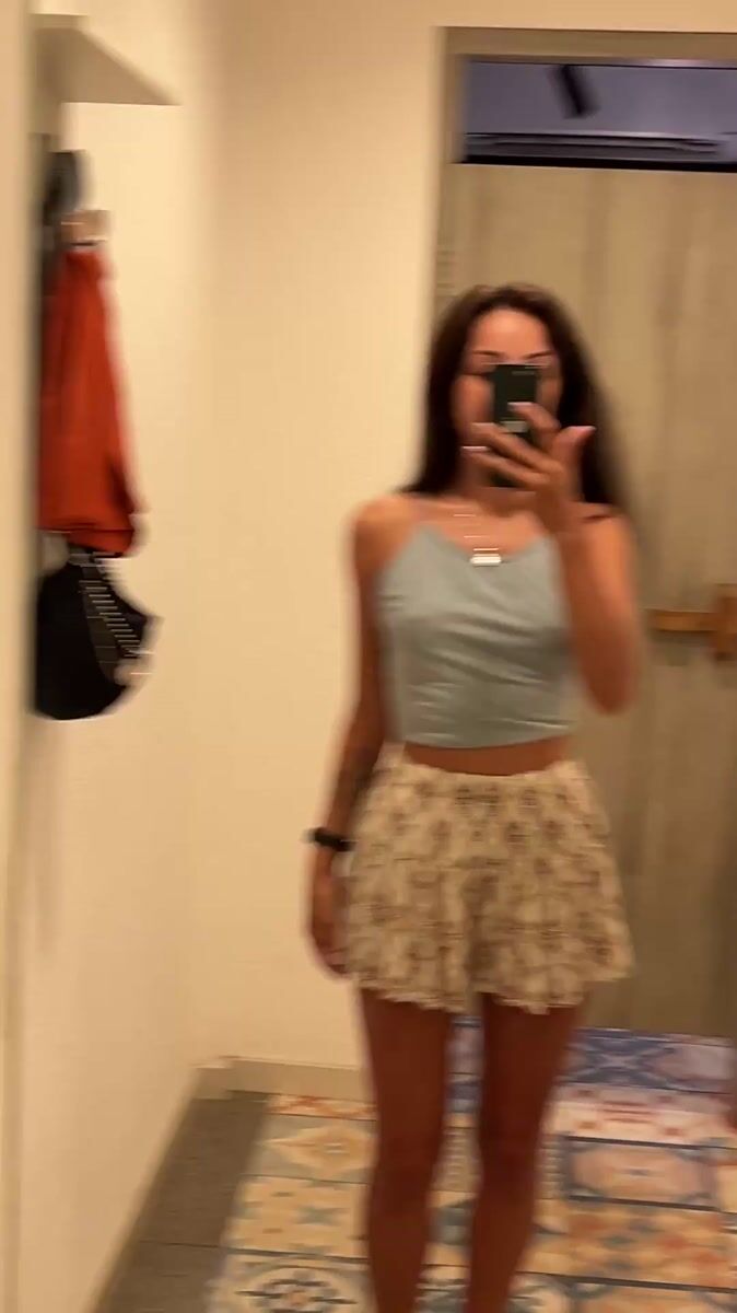 Topics: mirror selfie, changing room, crop top, fashion, indoor photography, personal style, youth culture, social media, lifestyle, daily life