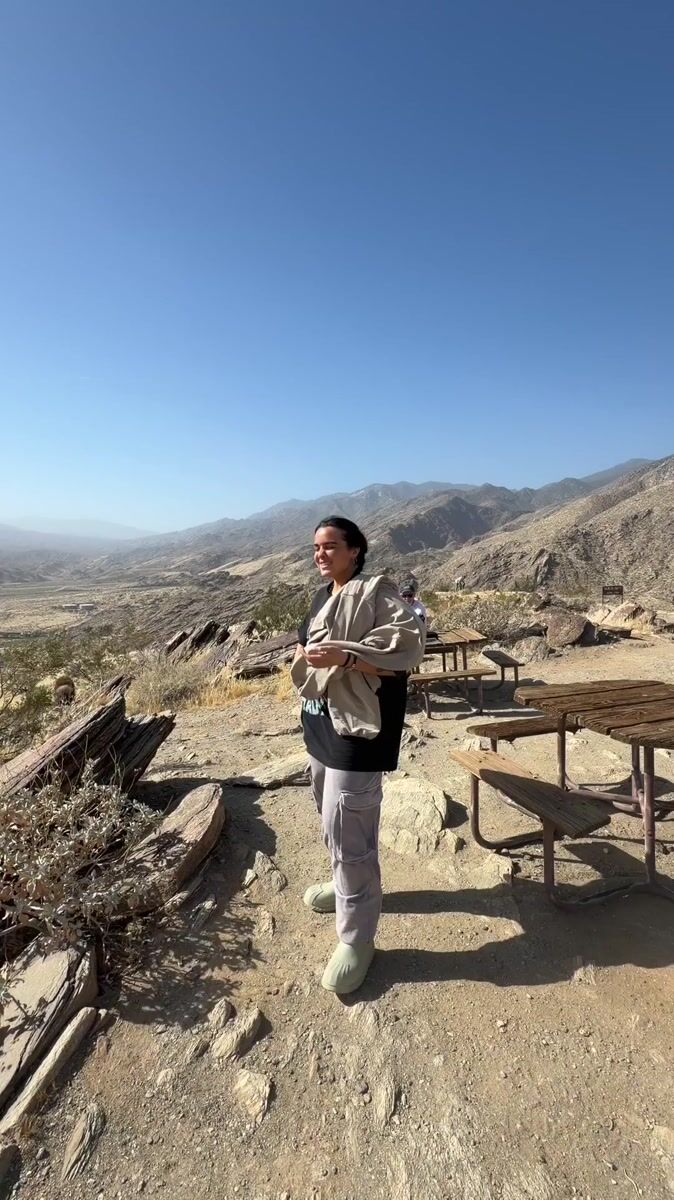 Visitor enjoys mountain overlook views in Palm Springs