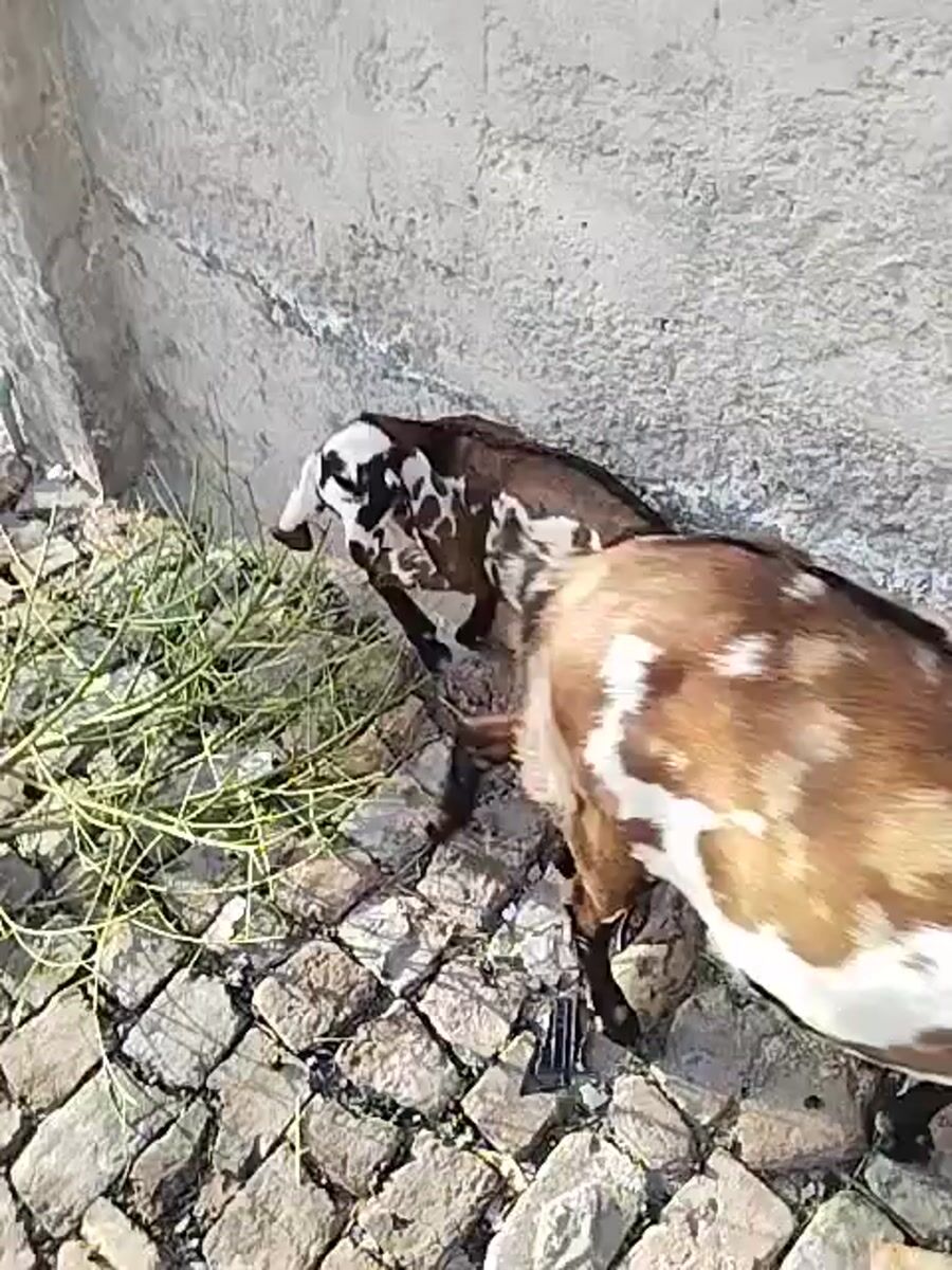 Goats graze near brick wall in Dera Chahal