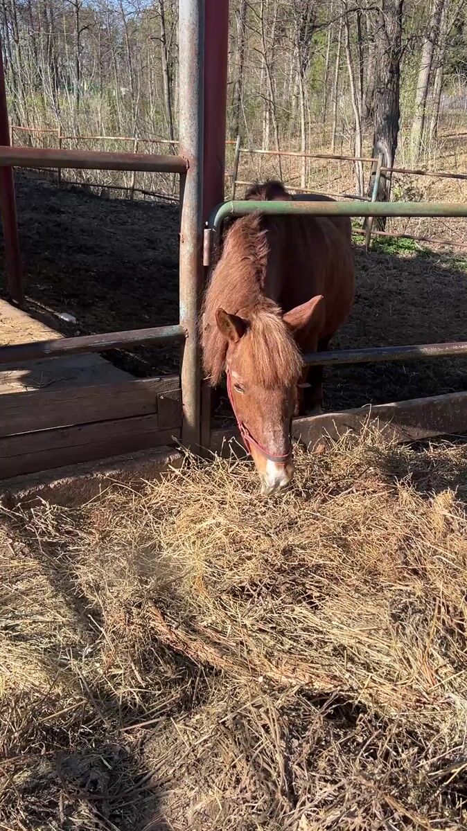 Miniature horses and goat feeding at Russian farm facility