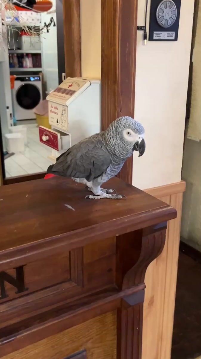 Topics: african grey parrot, domestic cat, pet photography, indoor pets, home interior, animal behavior, pet ownership, domestic animal, lifestyle, daily life