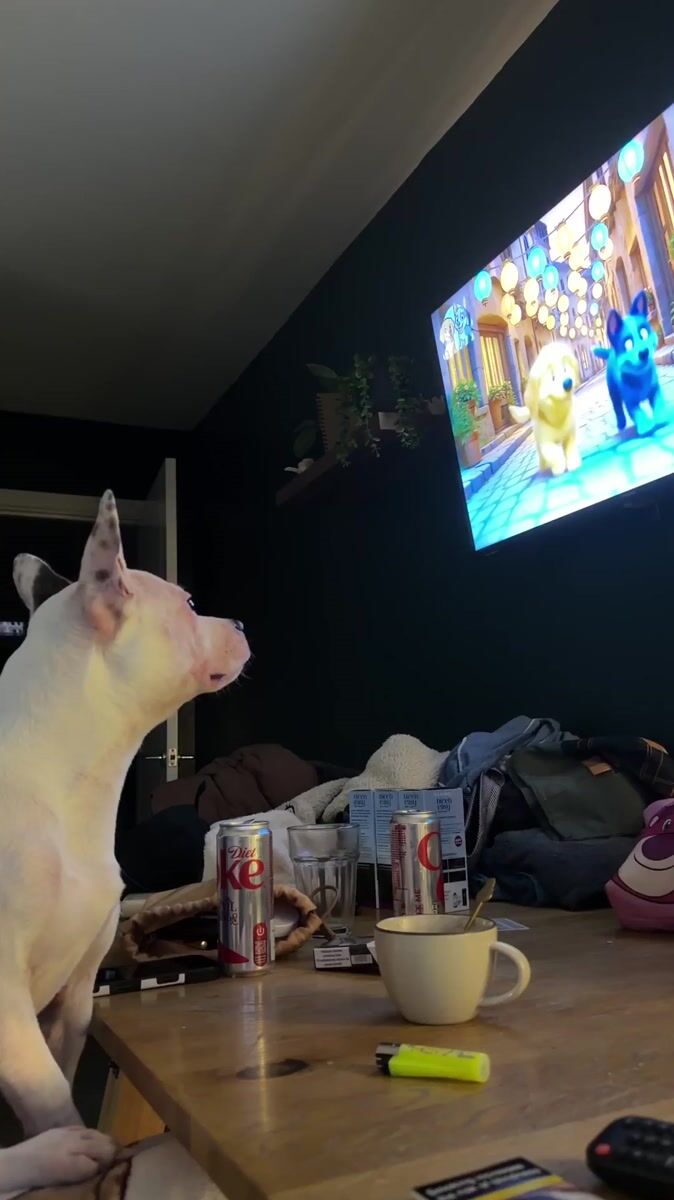 Topics: dog television, pet sleeping, indoor relaxation, domestic pet, home life, animal behavior, companion animal, leisure, domestic, daily life