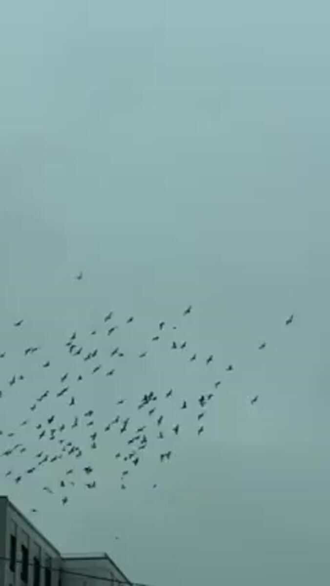 Large bird flock flies in formation over New York
