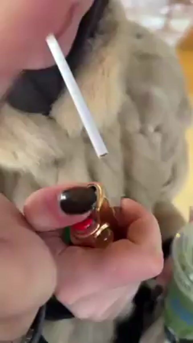 Topics: coffee cup, selfie, cigarette lighting, cafe interior, coffee shop, social media, winter clothing, casual dining, urban life, daily life