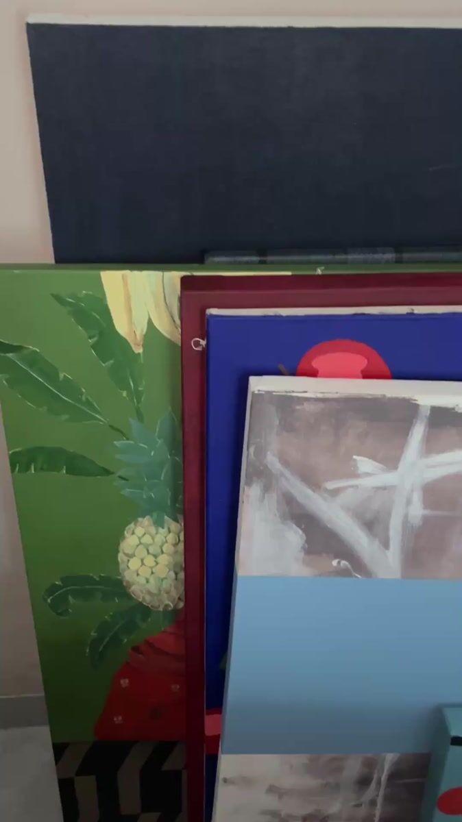 Topics: paintings, garden rain, tv reflection, indoor art, rainfall, bedroom, morning, domestic, weather, daily life