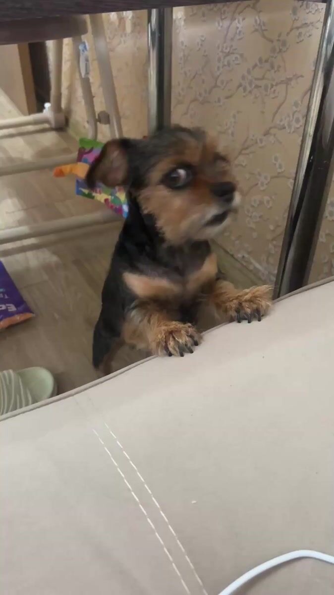 Topics: dog affection, terrier mix, morning moment, pet interaction, indoor scene, domestic life, companion animal, daily life, social, lifestyle