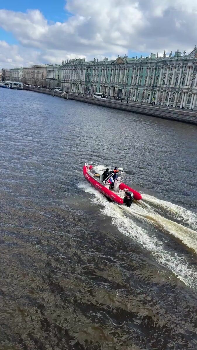Red speedboat with three passengers spotted on Saint Petersburg river