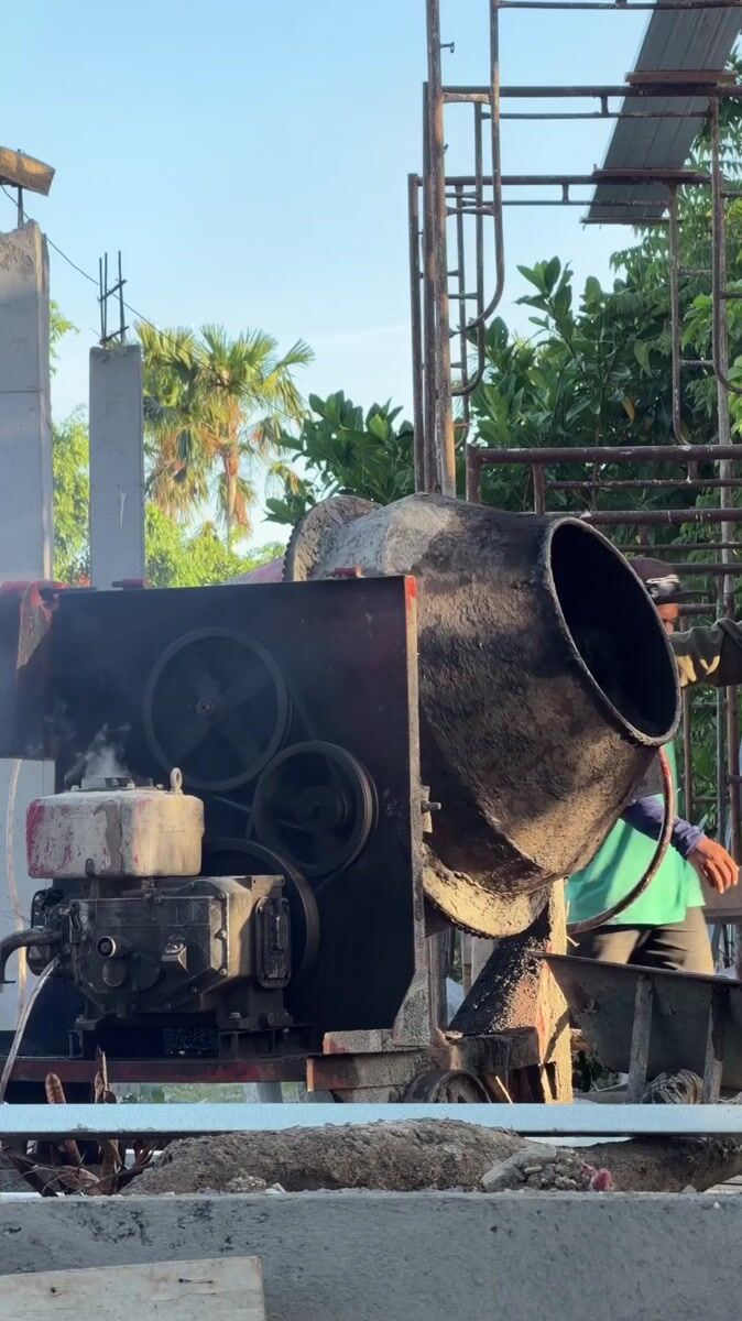 Topics: cement mixer, rooftop pool, treadmill workout, construction site, swimming pool, fitness activity, leisure, urban development, daily life, tropical