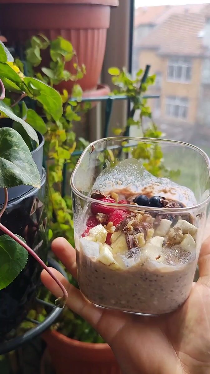 Breakfast moment: overnight oats with fruit in Burgas