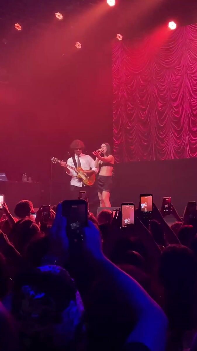 Topics: live music, stage performance, female vocalist, nighttime concert, entertainment, music venue, performance art, cultural event, nightlife, urban