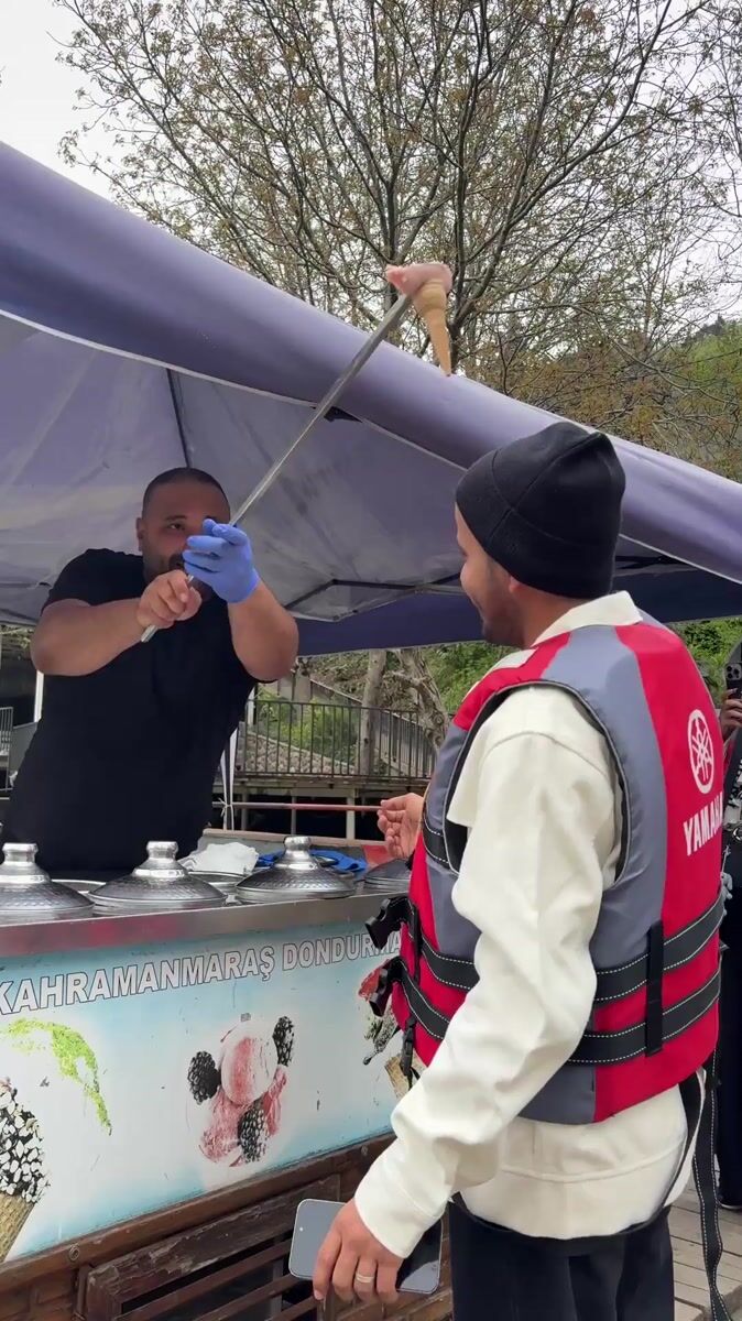 Topics: ice cream vendor, inflatable boat, stone bridge, riverside activity, village life, tourism, daily life, social, rural, recreation