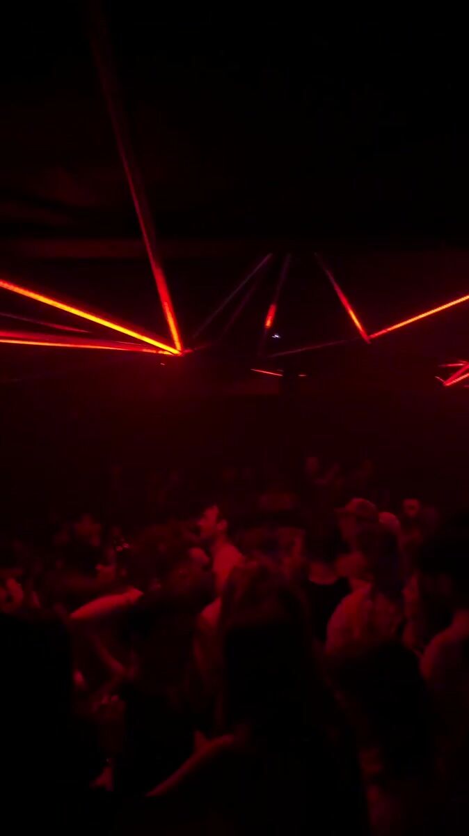 Topics: geometric laser, nightclub crowd, red lighting, nightlife, dance venue, club scene, entertainment, urban nightlife, social, nighttime