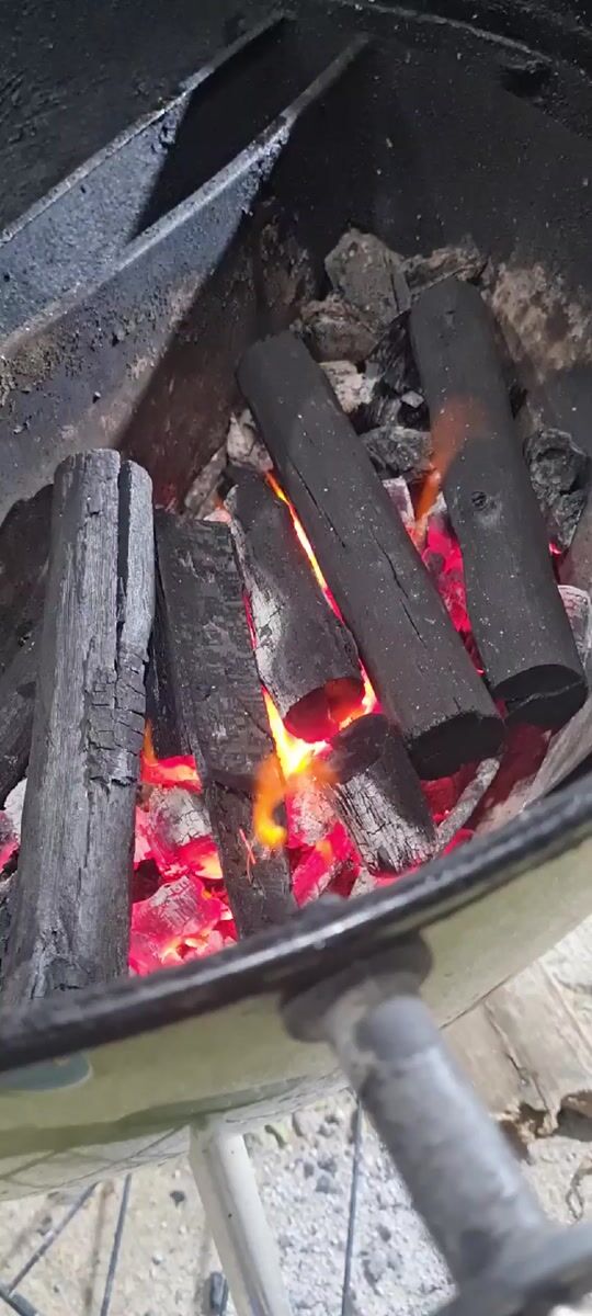 Topics: barbecue grill, cooked meat, tabby cat, outdoor cooking, backyard gathering, food preparation, social gathering, leisure, domestic, daily life