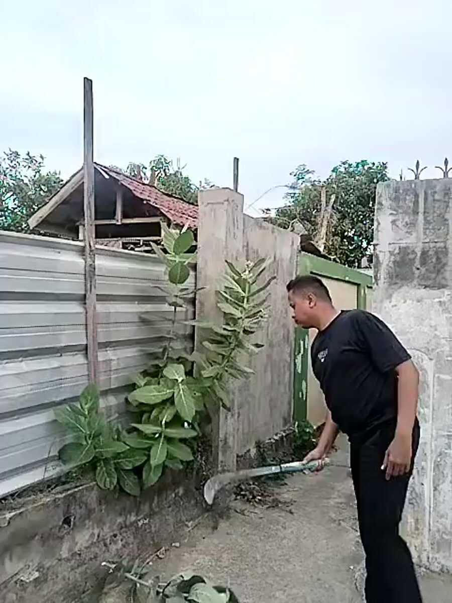 Topics: plant pruning, bicycle riding, toyota fortuner, residential alley, garage parking, neighborhood, daily life, suburban, community, indonesia
