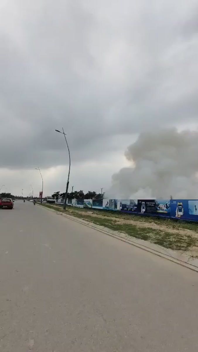 Topics: smoke plume, construction site, street observation, building fire, urban incident, traffic view, emergency event, infrastructure, urban, daily life