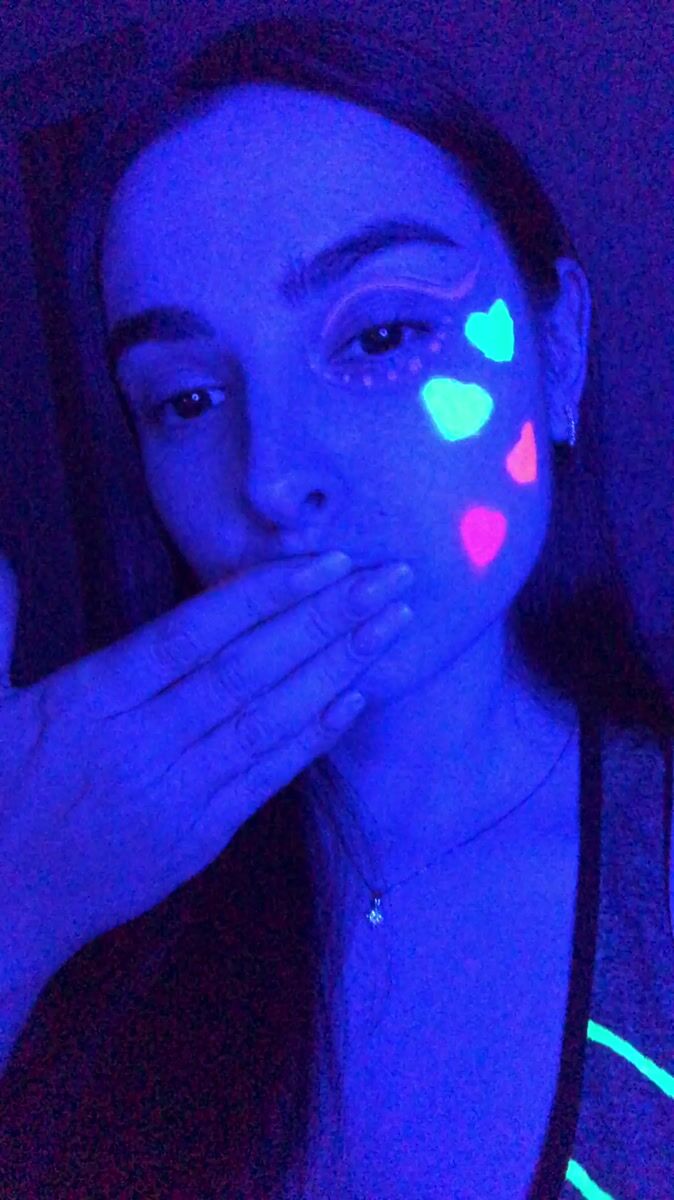 Topics: neon makeup, uv lighting, face art, fluorescent design, artistic portrait, beauty art, nightlife, creative expression, entertainment, visual art