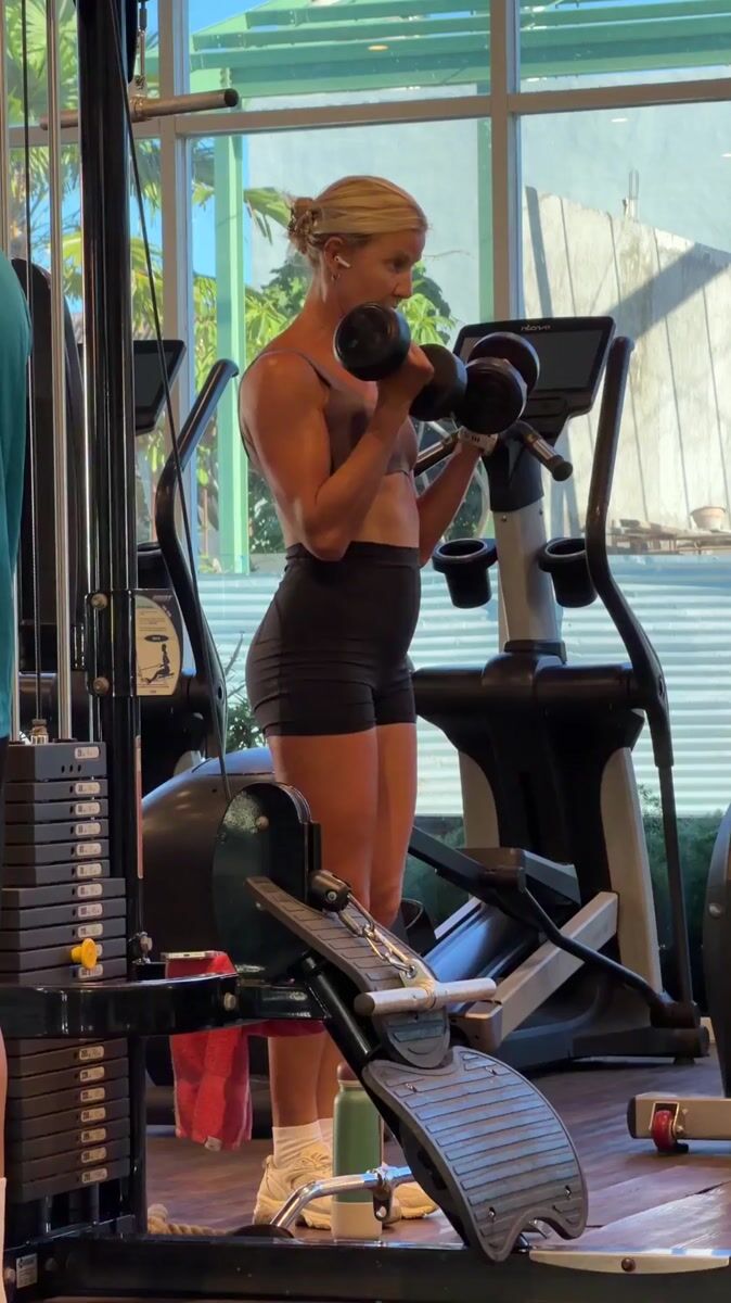 Topics: dumbbell curls, balance exercise, gym workout, fitness training, athletic wear, morning exercise, fitness, health, indoor activity, daily life