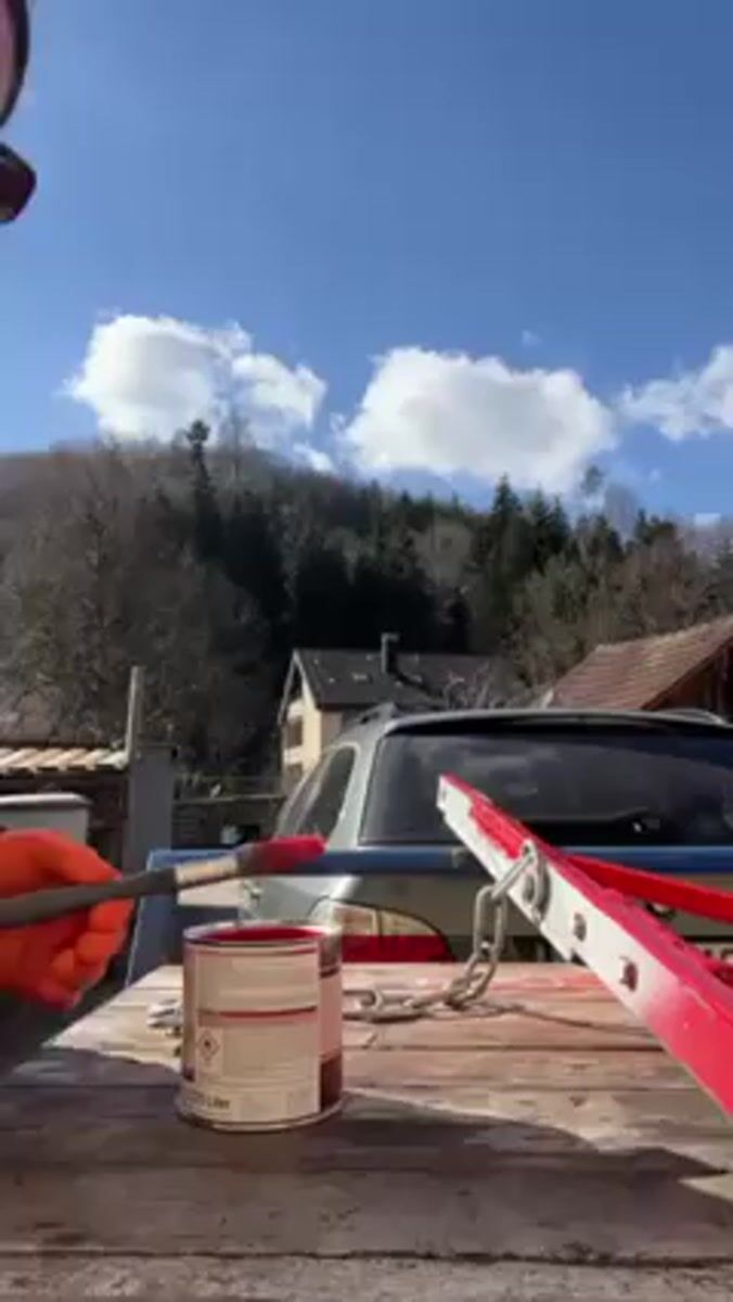 Woman paints ladder, does household chores in Wüstenrot afternoon