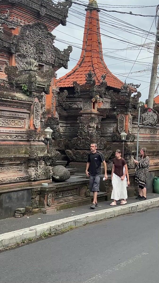 Topics: balinese architecture, stone carving, family walk, traditional building, ubud tourism, cultural heritage, pedestrian, southeast asia, daily life, travel