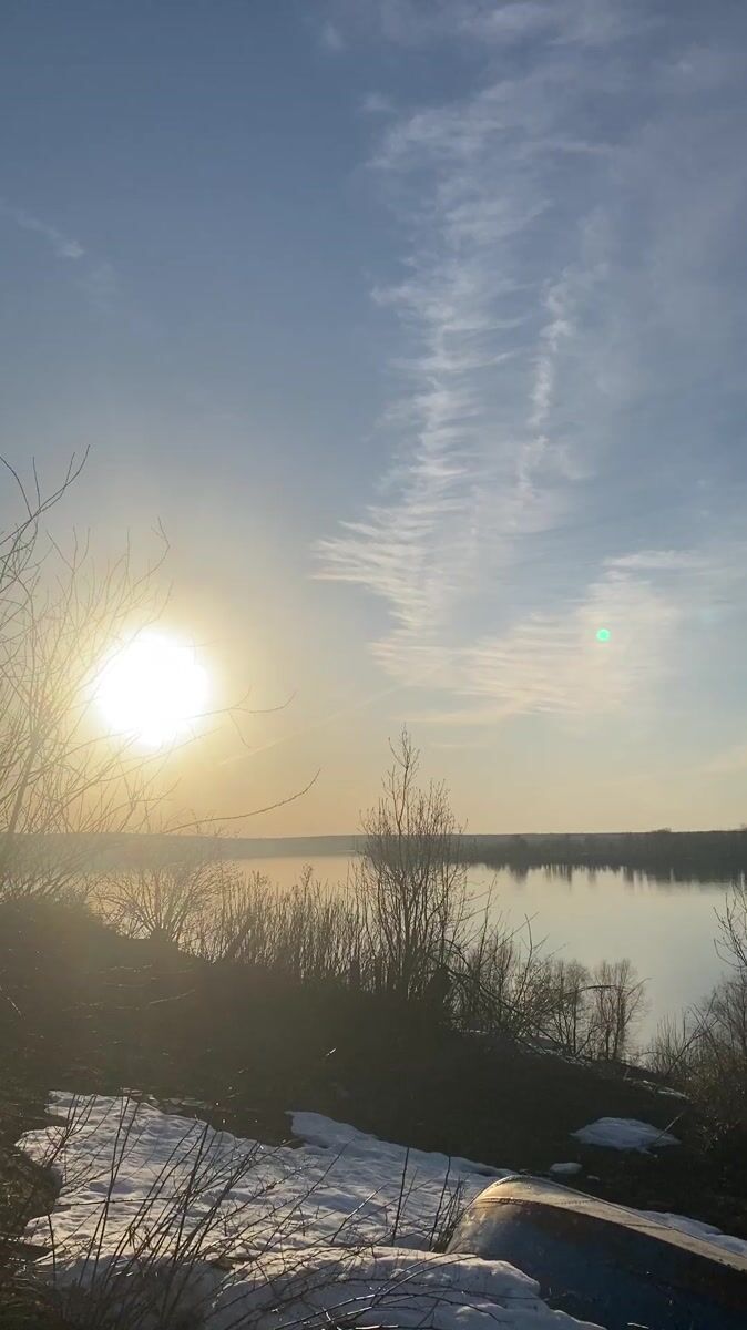 Topics: calm lake, spring landscape, snow patches, nature scene, seasonal transition, water body, outdoor, peaceful, rural, daily life