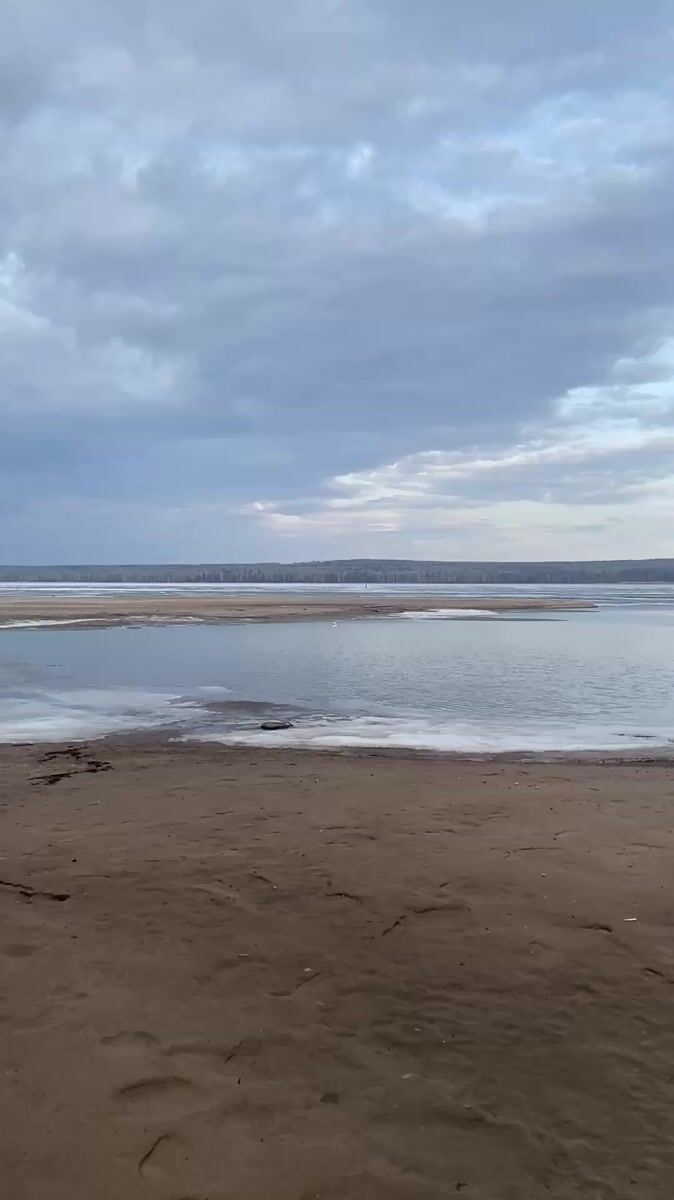 Waterfront gathering documented in Chaikovsky, Russia amid spring thaw