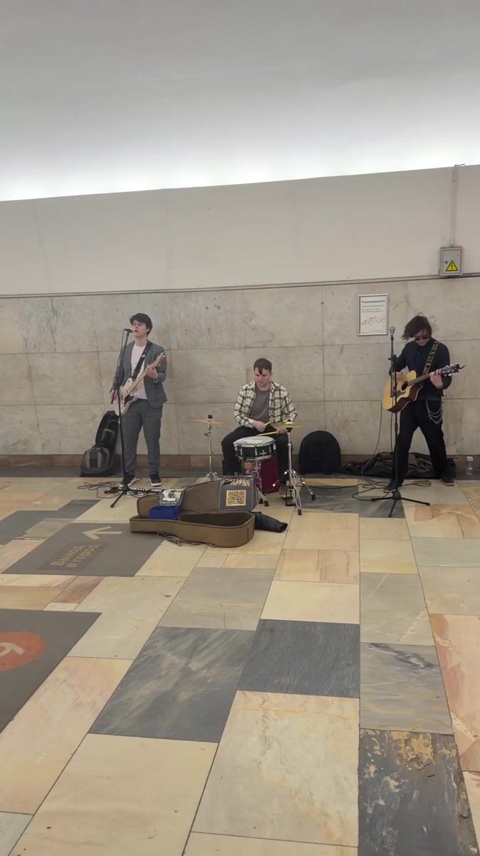 Three-piece band performs in Moscow subway station