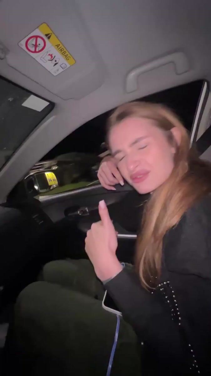 Woman makes hand gestures in passenger seat, Budva Montenegro