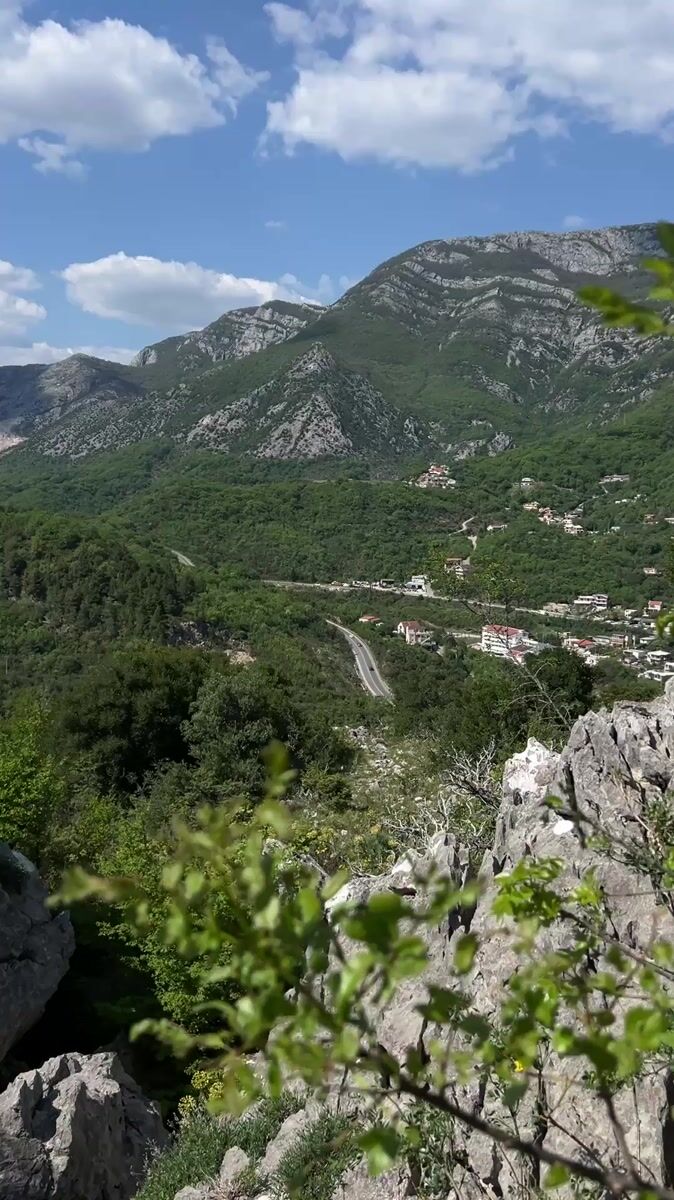 Tourist captures scenic Montenegro mountain views and historic ruins
