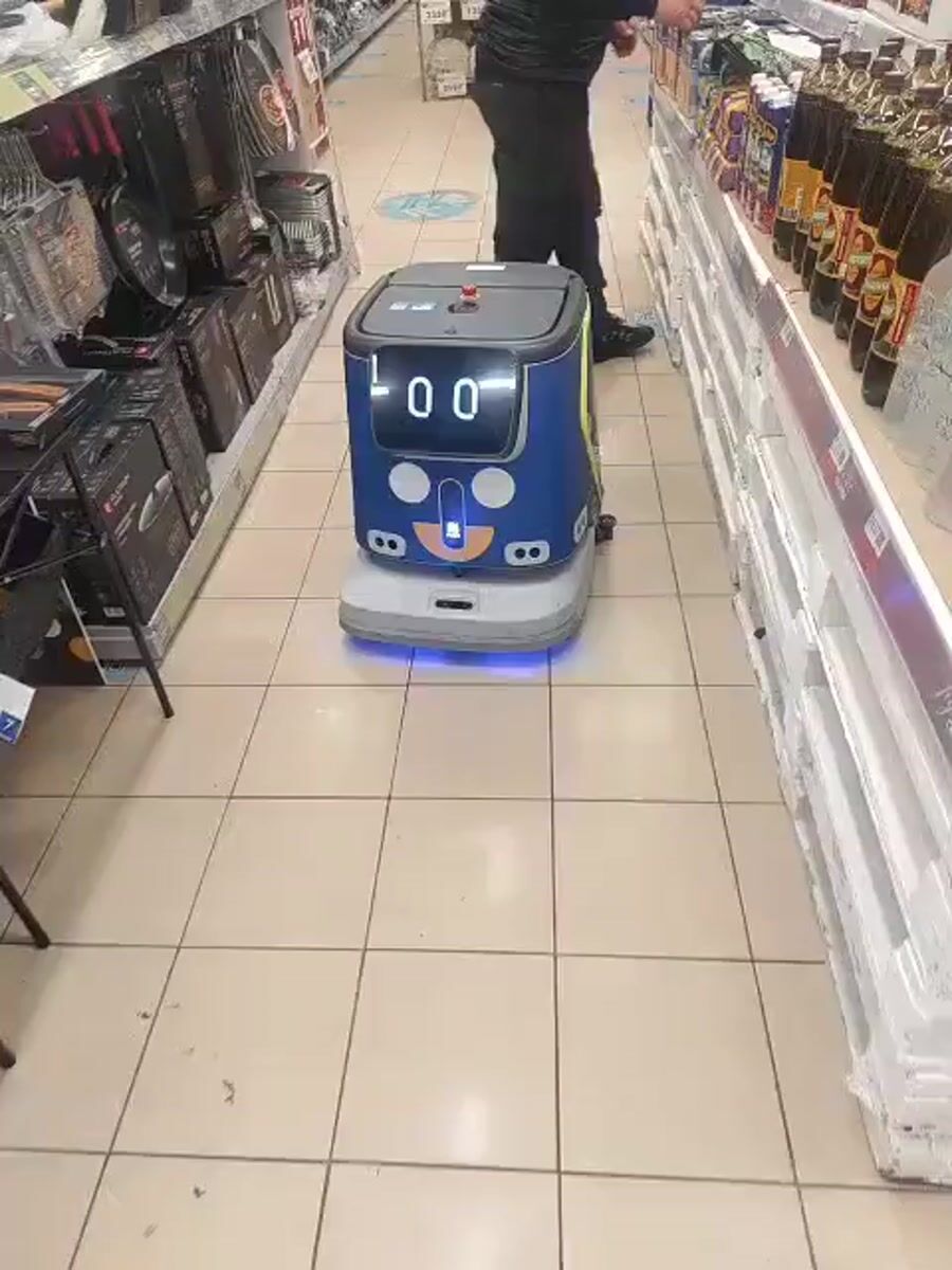 Service robot spotted in Krasnoyarsk supermarket during snowy morning