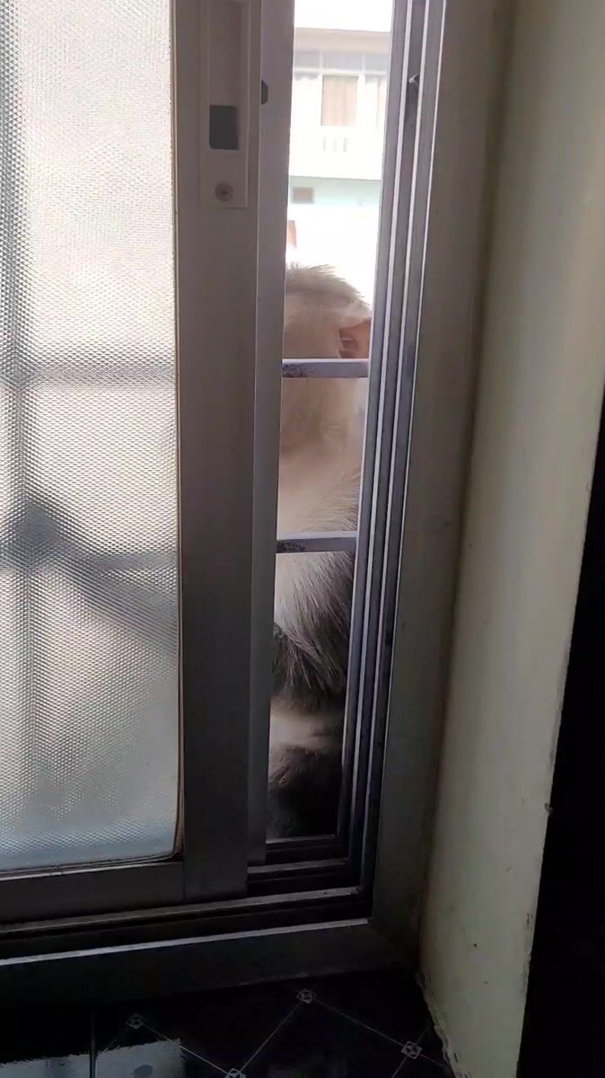 Topics: monkey feeding, tomato, barred window, animal interaction, zoo, captivity, human animal, wildlife, social, daily life