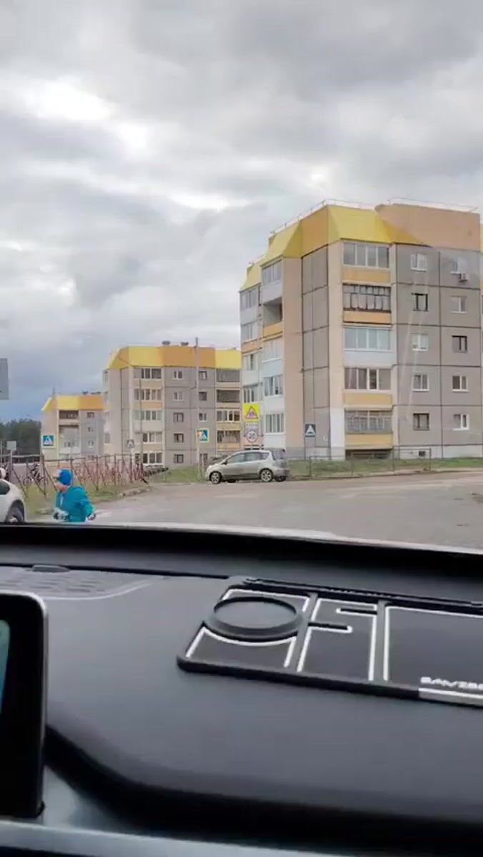 Topics: vehicle travel, toddler passenger, street view, wall mural, urban landscape, daily life, family, transportation, domestic, routine