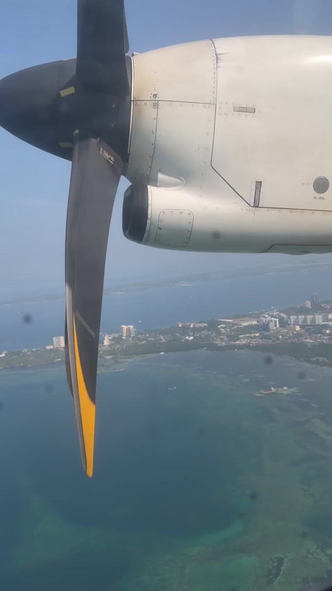 Passenger films turboprop engine view during flight over Philippines