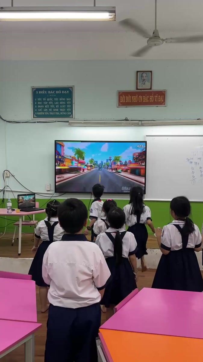 Topics: classroom television, morning session, school uniform, education, elementary school, indoor learning, student life, education, urban, daily life
