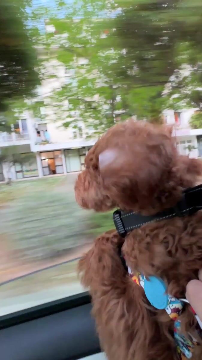 Topics: poodle, car ride, open window, pet travel, dog, vehicle, animal, transport, daily life, lifestyle