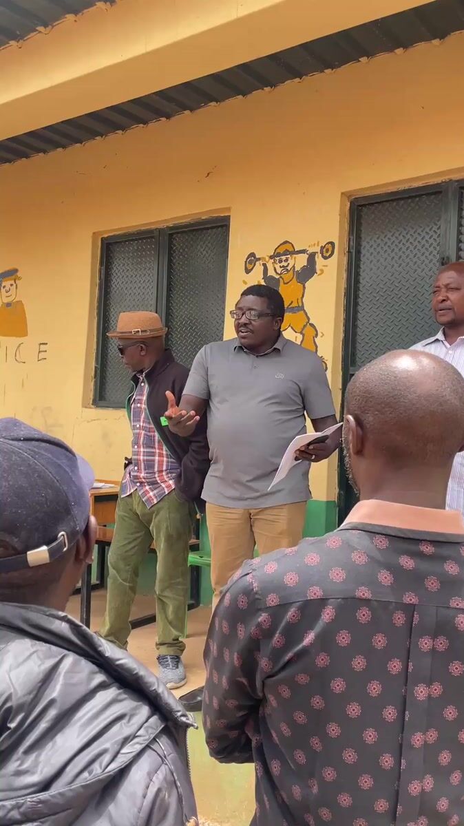 Community gathering with documents outside police building in Bukuru