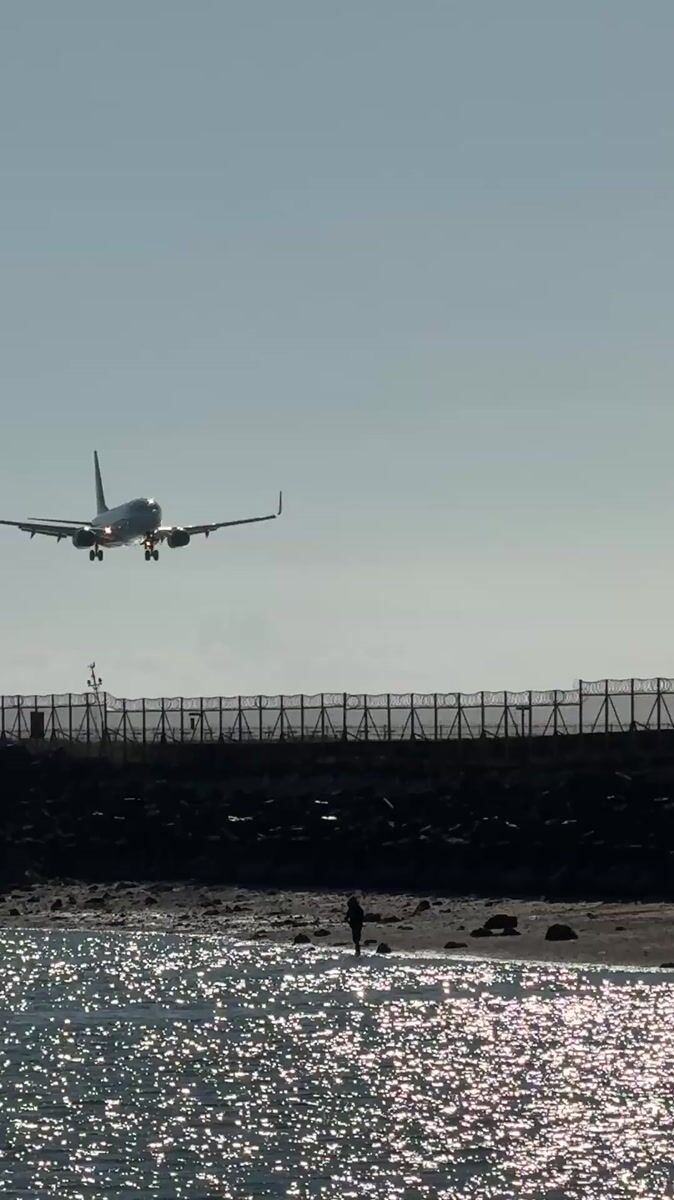 Topics: aircraft landing, passenger jet, airport arrival, aviation, transportation, travel, infrastructure, urban, indonesia, daily life