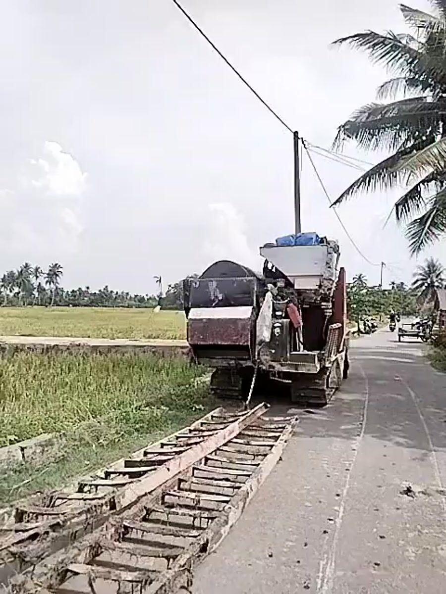Combine harvester parked roadside in Dayahbaro, Indonesia