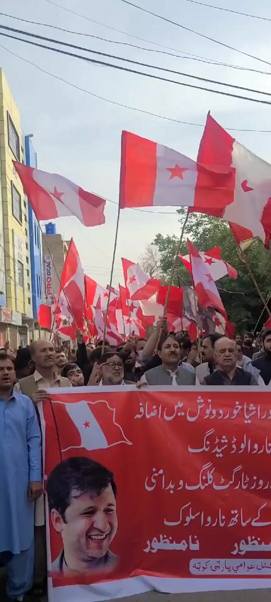 Men stage street protest with flags in Quetta, Pakistan