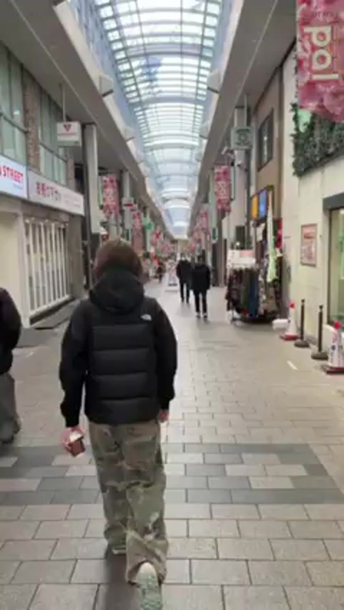 Person walks through covered shopping arcade in Suginami City