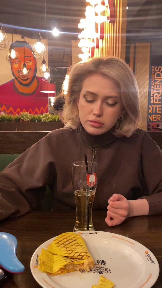 Woman dining alone at restaurant in Ufa, Russia