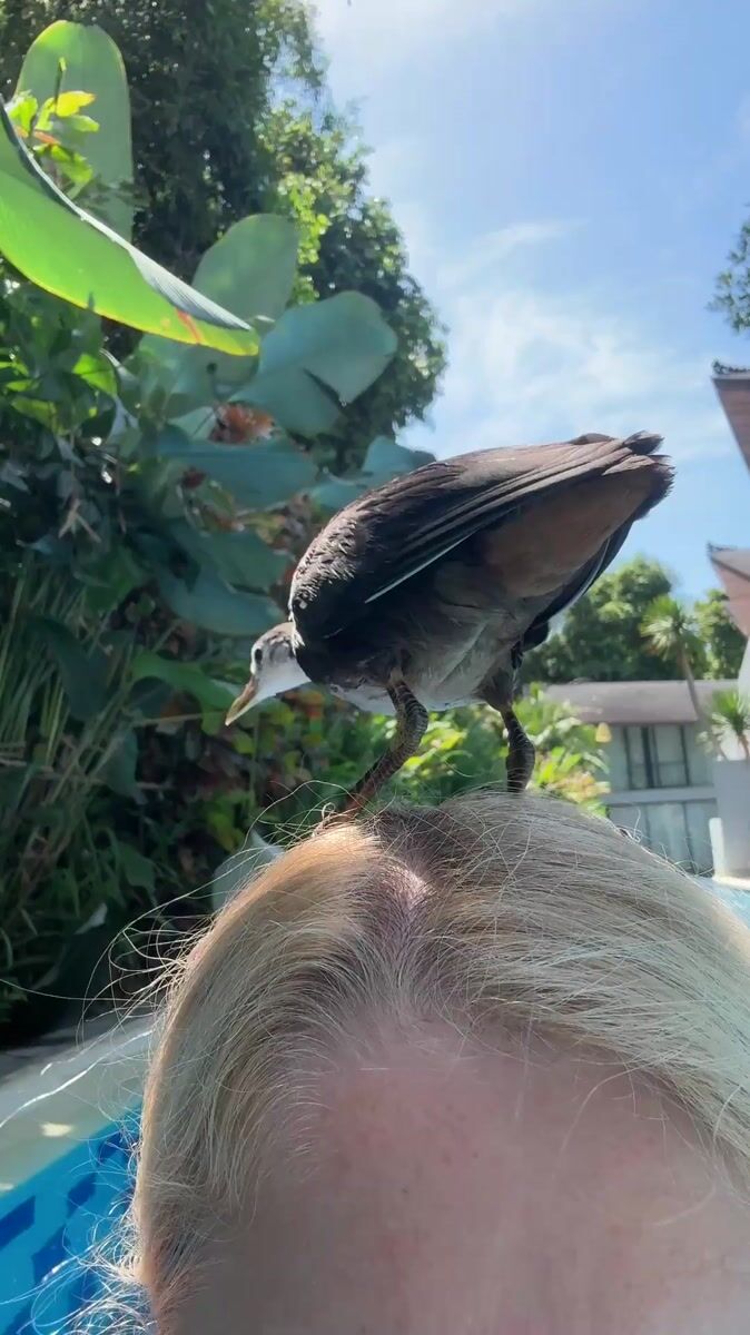 Waterhen birds spotted around swimming pools in Kuta Selatan