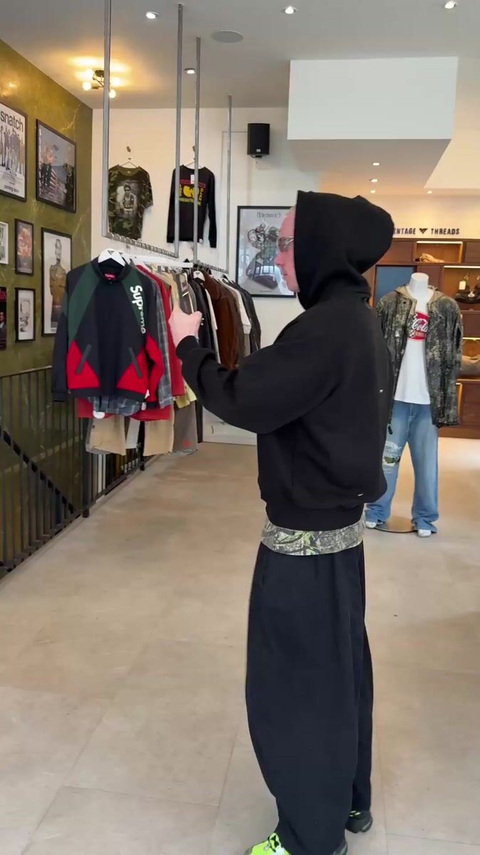 Topics: martial arts, selfie, retail store, indoor filming, social media, shopping, personal expression, urban, leisure, daily life