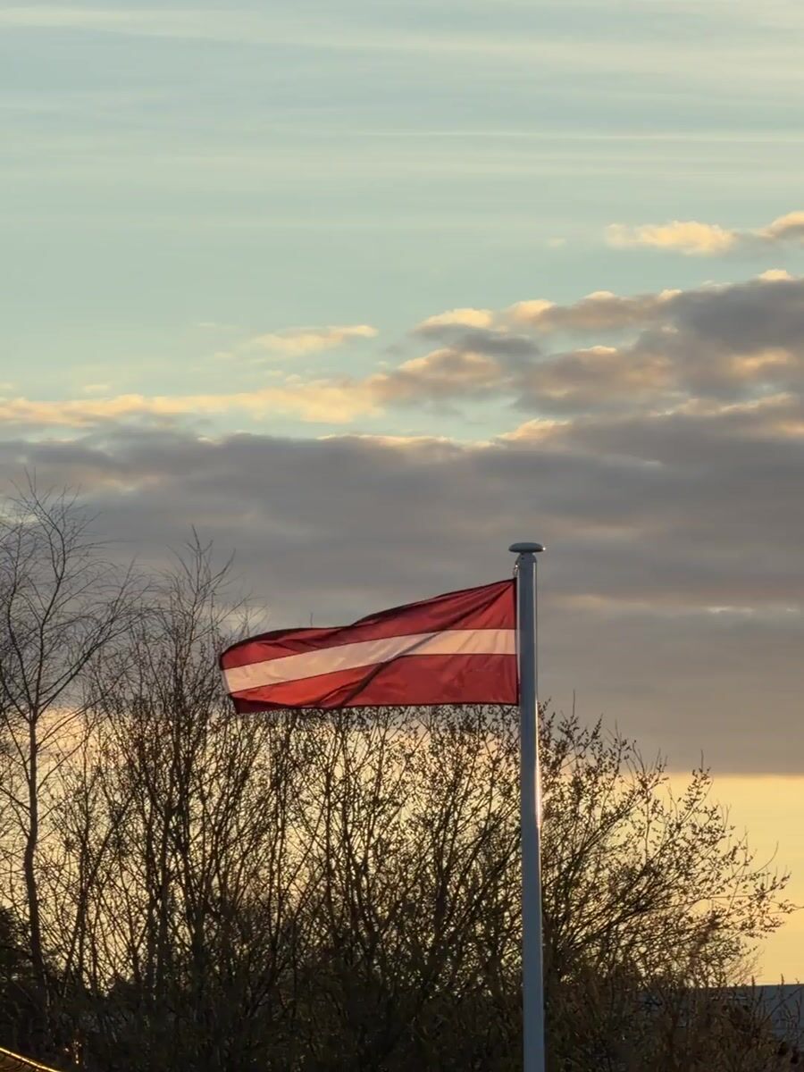 Topics: latvian flag, young girl, tissue holding, flagpole display, patriotic symbol, childhood moment, national identity, community life, daily life, social