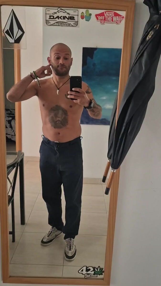 Man films himself shirtless with lion tattoo in Barcelona mirror